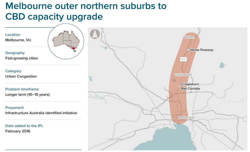 Here is what the Infrastructure Australia report said on the Melbourne outer northern suburbs to CBD capacity upgrade: